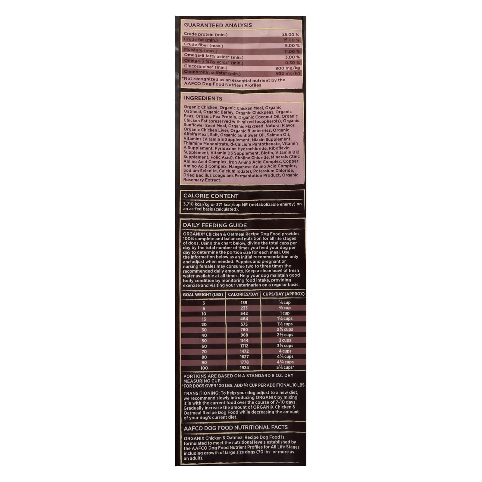 Castor and pollux - organix dry dog food - chicken and oatmeal recipe - 18 lb.