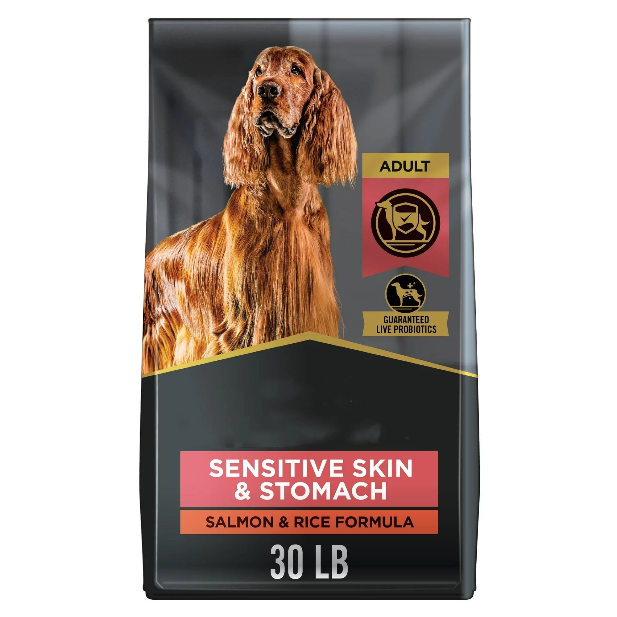 2.This sensitive stomach and skin formula, with nutrient-rich dog food salmon as the first ingredient, ensures that each bite packs a powerfully tasty high protein dog food flavor backed by essential adult dog food nutrition to help support your dog's skin and stomach, as well as his entire well-being.