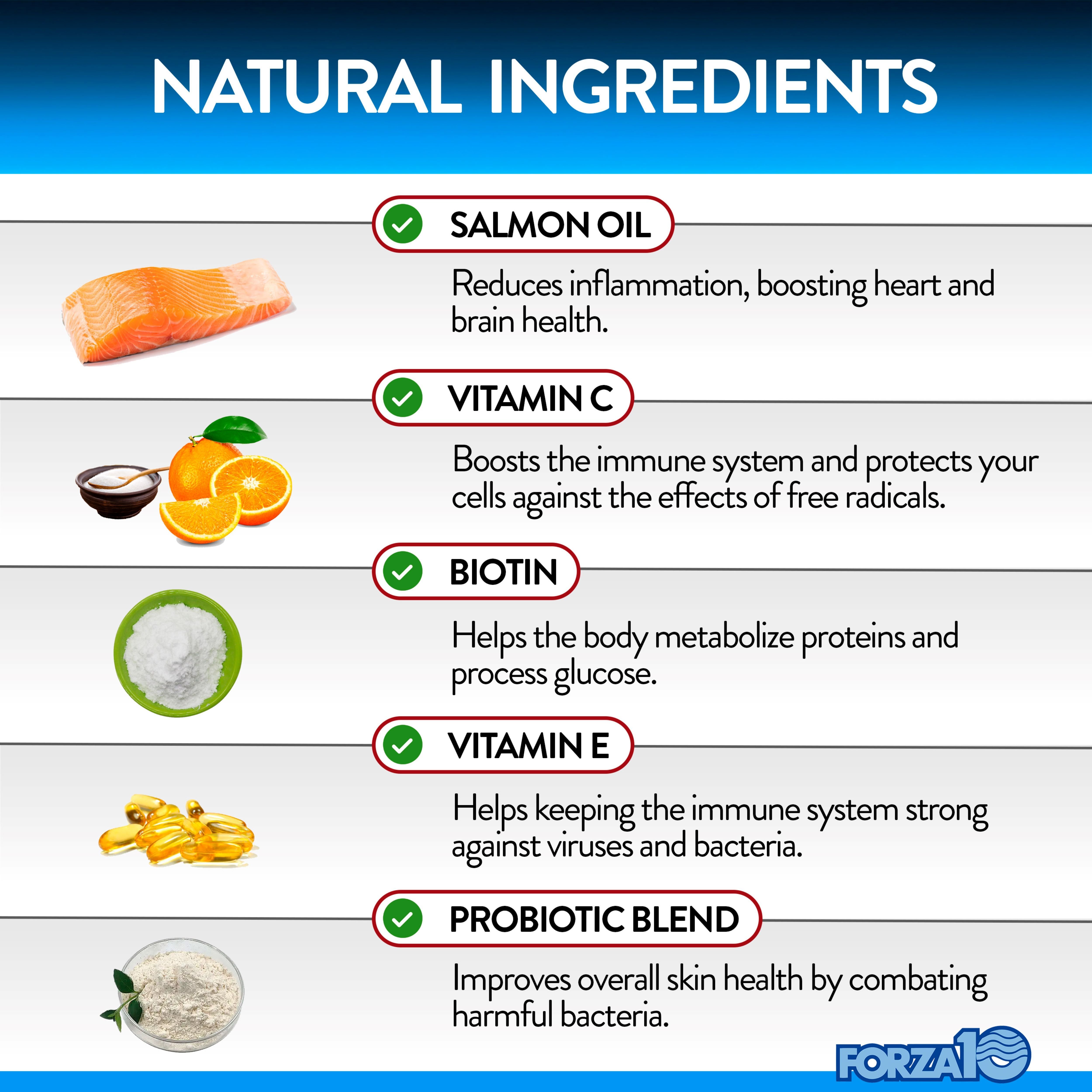 Krill Meal, Wild Alaskan Salmon Oil, Marine Microalgae (Schyzochytrium sp), Ascorbic Acid (Vitamin C), Biotin, Vitamin E (d-alpha Tocopherol acetate), Probiotic Blend (Lactobacillus acidophilus, Lactococcus lactis, Lactobacillus plantarum, Lactobacillus fermentum, Lactobacillus brevis), Brewer's Yeast, Citric Acid, Coconut Glycerin, Flaxseed, Mixed Tocopherols, Oat Flour, Palm Fruit Oil, Powdered Cellulose, Rosemary Extract, Salmon Protein, Sorbic Acid, Sunflower Lecithin.
